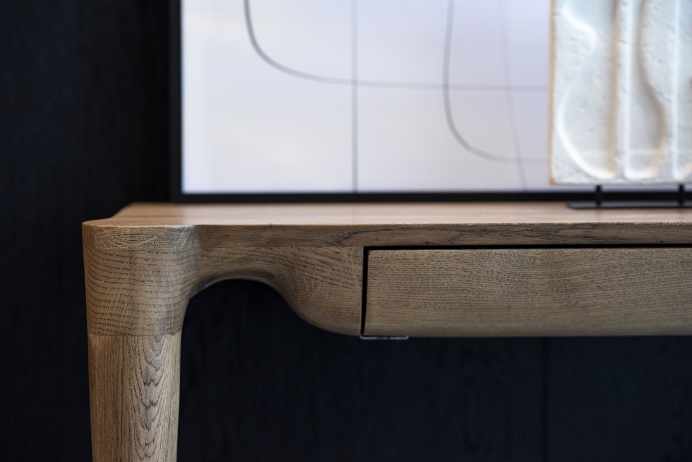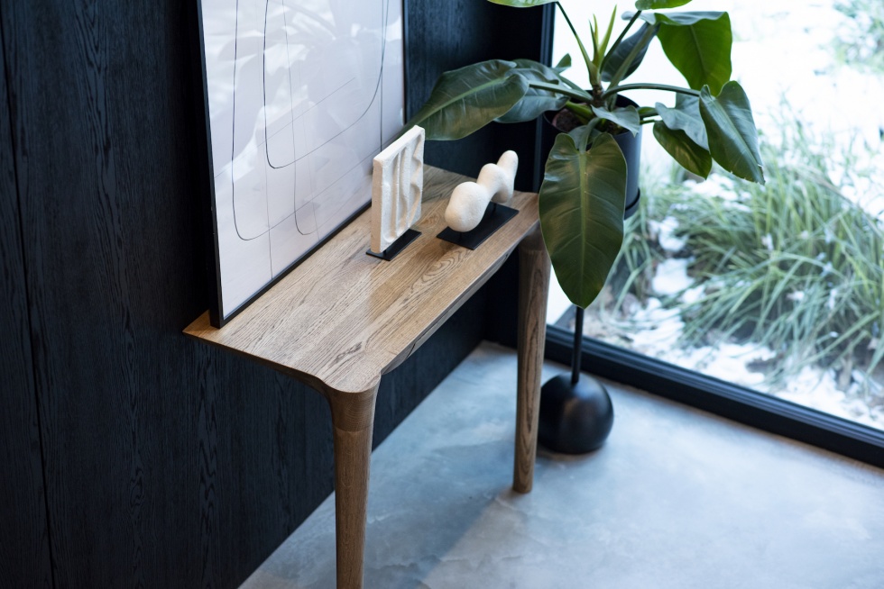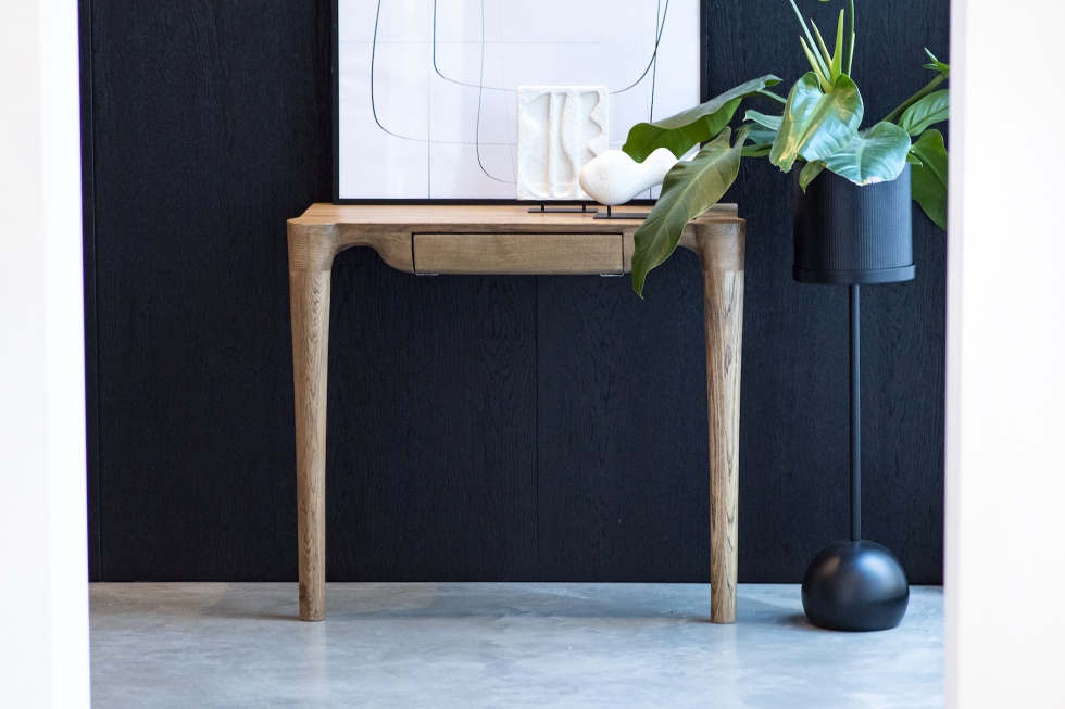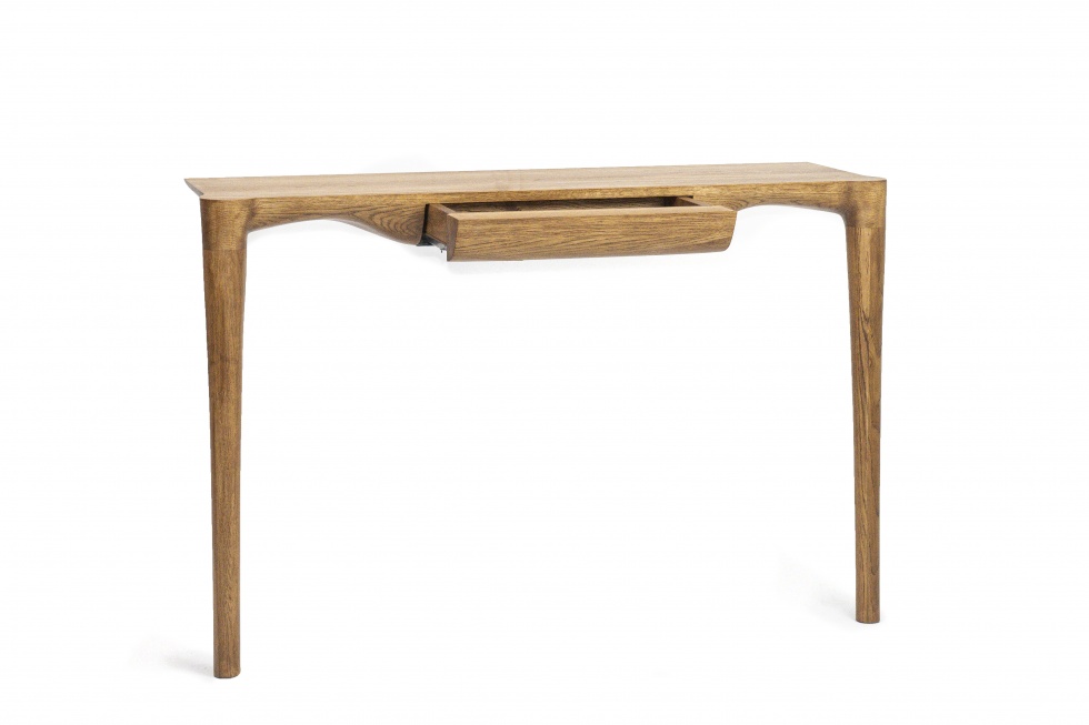 Konsola HOYA to minimalistyczna propozycja od Szyszka Design – lekka, a jednocześnie solidnie wykonana. Idealna do przedpokoju, hallu lub salonu pod lustro, łączy naturalne drewno z praktyczną funkcją. Jej zwężająca się ku dołowi sylwetka optycznie powiększa przestrzeń, a dwie pojemne szuflady z systemem tip-on pozwalają wygodnie przechowywać drobiazgi.