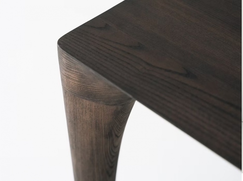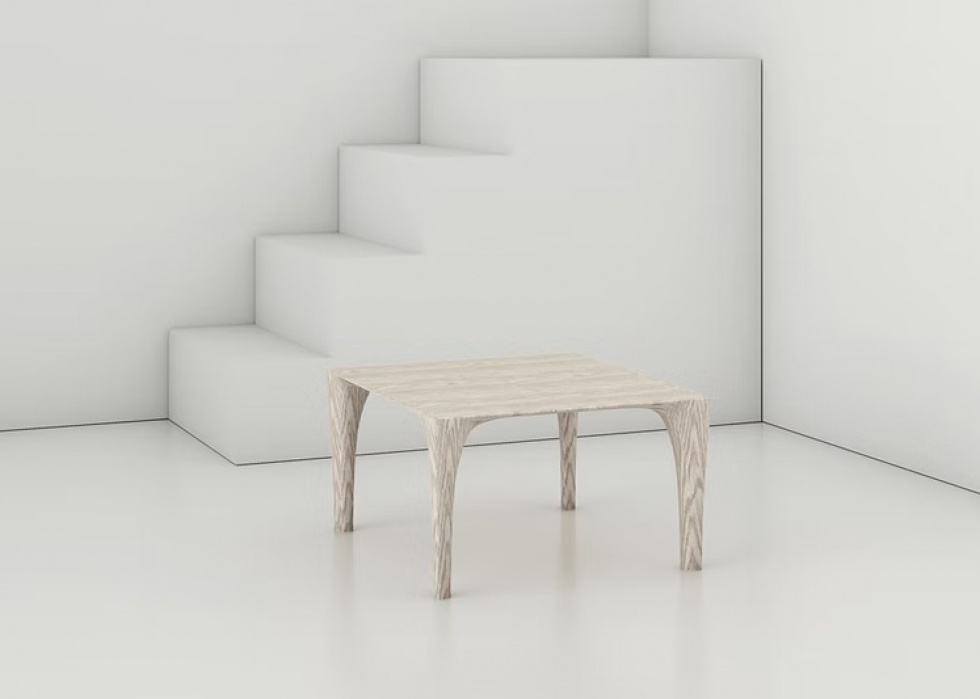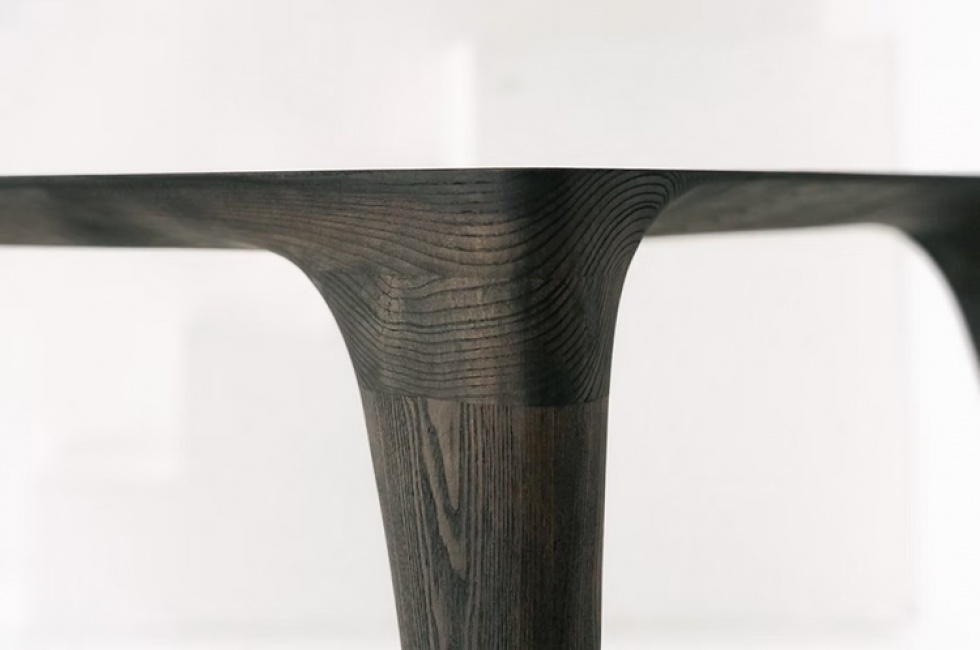 Forma: płynna bryła bez wyraźnego przejścia między blatem a nogami.