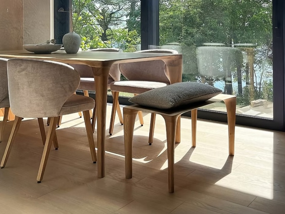 RAMU to designerski stolik kawowy, który w niektórych wariantach dostępnych rozmiarów może pełnić również funkcję ławki. Wykonany w całości z litego drewna dębowego, zachwyca płynnymi, organicznymi kształtami. Świetnie komponuje się z kolekcją stołu Ramu, tworząc spójny, estetyczny zestaw mebli.